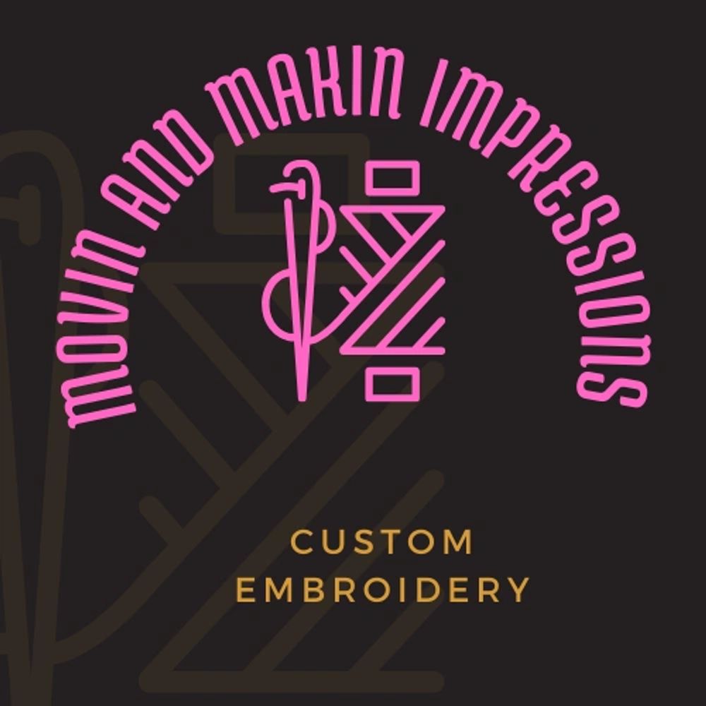 At Movin and Makin Impressions, we are dedicated to delivering high-quality custom embroidery services. Our mission is to help individuals and organizations enhance their brand through beautifully crafted embroidery such as: